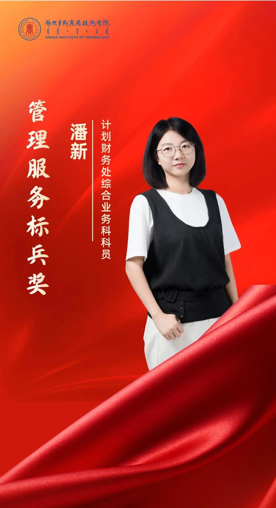 潘新,大學本科,助理會計師,中共黨員。她始終以高度的責任感和嚴謹?shù)墓ぷ鲬B(tài)度投身于學校預算與績效管理工作。深耕業(yè)務,精準編制校內預算,強化剛性約束,確保資金資源高效配置;積極推行全過程預算績效管理,嚴把績效目標設定、運行監(jiān)控和評價應用關。工作中,主動對接各單位、部門,耐心提供政策咨詢與業(yè)務指導,以務實的工作作風和熱枕的服務態(tài)度,在平凡的崗位上貢獻自己的力量。