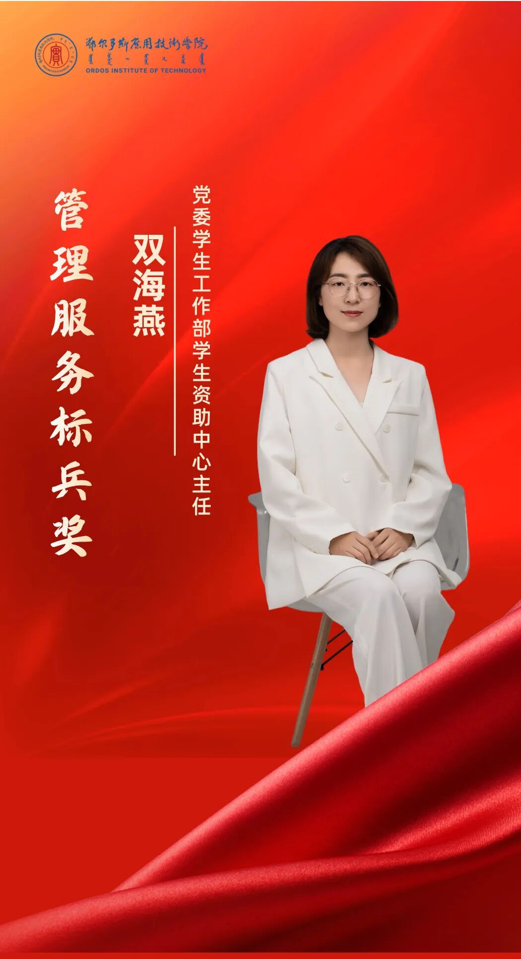 雙海燕,在職研究生,助理研究員,中共黨員。她深耕資助工作五載,牽頭制定印發(fā)制度十余項,形成起“1+1+13”資助制度體系。同時,創(chuàng)新構建“發(fā)展型”資助育人模式,助力家庭經(jīng)濟困難學生實現(xiàn)從“受助者”向“助人者”的蛻變。曾獲校級“優(yōu)秀個人”、“優(yōu)秀黨務工作者”、本科教育合格評估“創(chuàng)新突破獎”等榮譽,2025年入選內蒙古自治區(qū)學生資助工作專家?guī)欤詫嵏蔀閷W校資助工作高質量發(fā)展賦能。