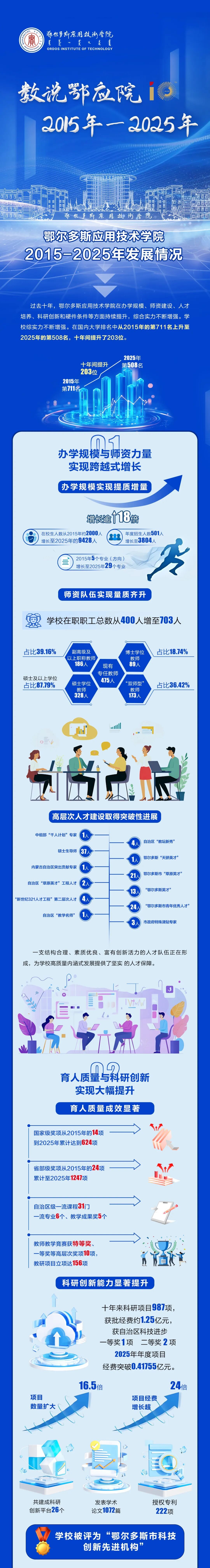 十年樹木,百年樹人。十年來,鄂爾多斯應用技術學院不斷夯實根基、明確辦學方向,今天讓我們一圖讀懂學校辦學實力與育人質量的“雙飛躍”。