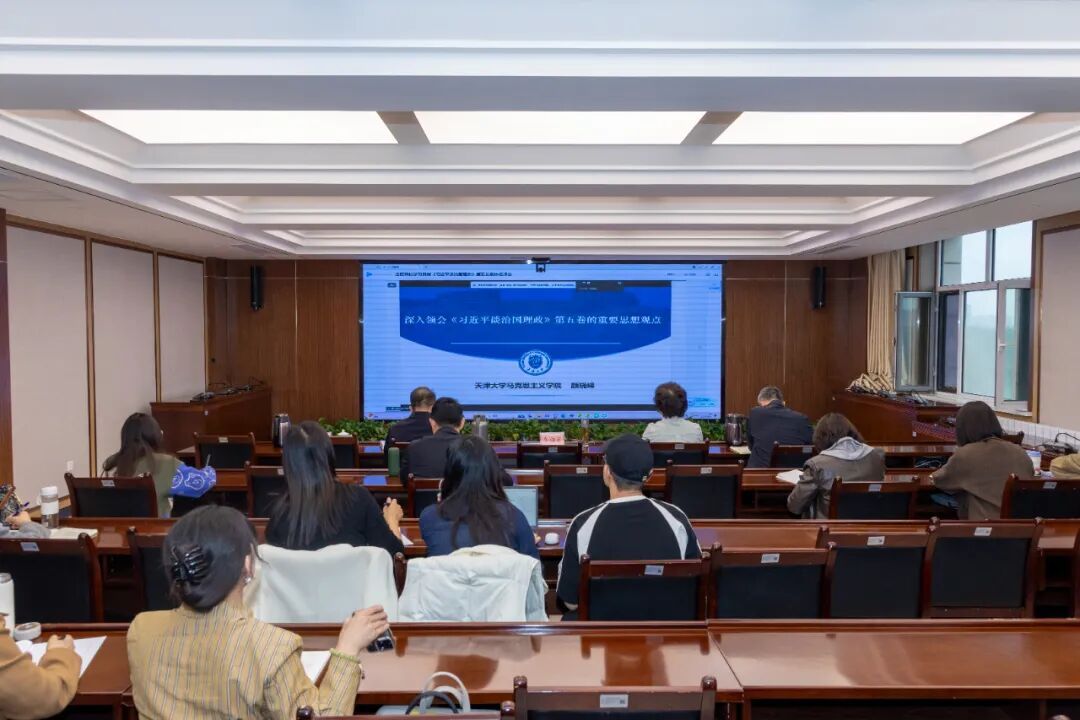 培訓通過在線方式組織全區高校觀看專題輔導報告,系統解讀《習近平談治國理政》第五卷核心思想、重點指導文獻閱讀方式、深入梳理其邏輯主線和內容體系,幫助思政課教師準確把握著作的核心內容和理論體系;線下則通過組織教師參加課程研討的方式進行,深入交流如何將其蘊含的新思想、新觀點有機融入課堂教學。