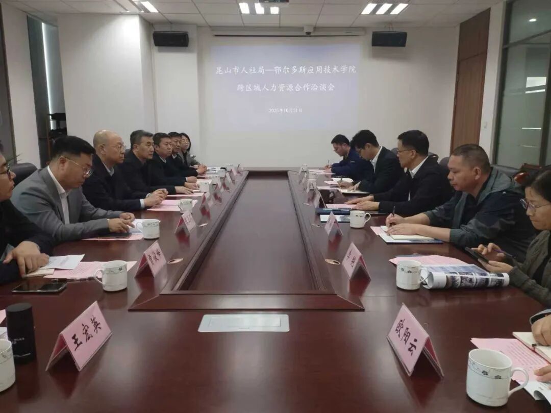 隨后,學校與昆山市人社局召開人力資源合作洽談會。雙方從地方產(chǎn)業(yè)轉型與高校人才供給的結構性對接出發(fā),探討了在課程共建、實習基地共享、就業(yè)服務聯(lián)動等方面的合作空間。會上,學校與昆山市人社局共同簽署政校企三方合作協(xié)議,并舉行“就業(yè)工作基地”授牌儀式。