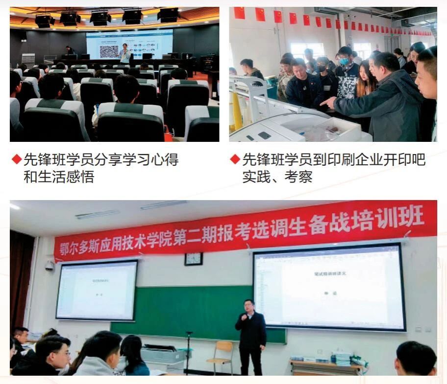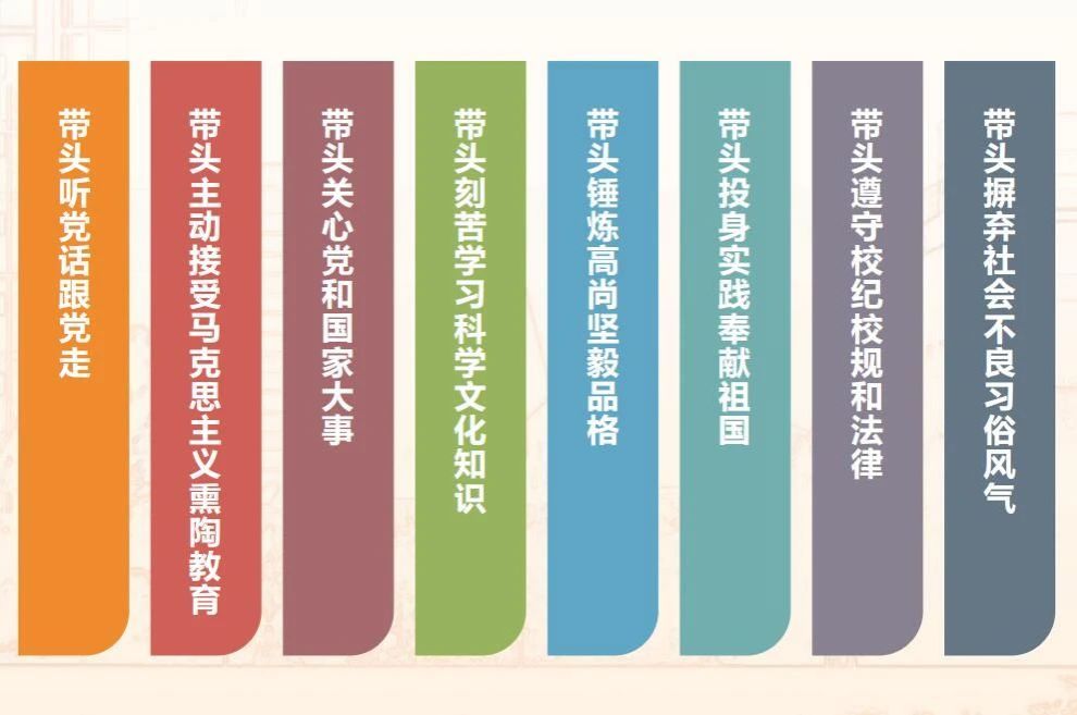 “鍥而不舍,敢為人先”是先鋒班的班訓(xùn),著力建設(shè)“四型”班級(jí),即建設(shè)“學(xué)習(xí)型、服務(wù)型、效能型、創(chuàng)新型”班級(jí),全體學(xué)員做到“八個(gè)帶頭”:即帶頭聽(tīng)黨話跟黨走;帶頭主動(dòng)接受馬克思主義熏陶教育;帶頭關(guān)心黨和國(guó)家大事;帶頭刻苦學(xué)習(xí)科學(xué)文化知識(shí);帶頭錘煉高尚堅(jiān)毅品格;帶頭投身實(shí)踐奉獻(xiàn)祖國(guó);帶頭遵守校紀(jì)校規(guī)和法律;帶頭摒棄社會(huì)不良習(xí)俗風(fēng)氣。