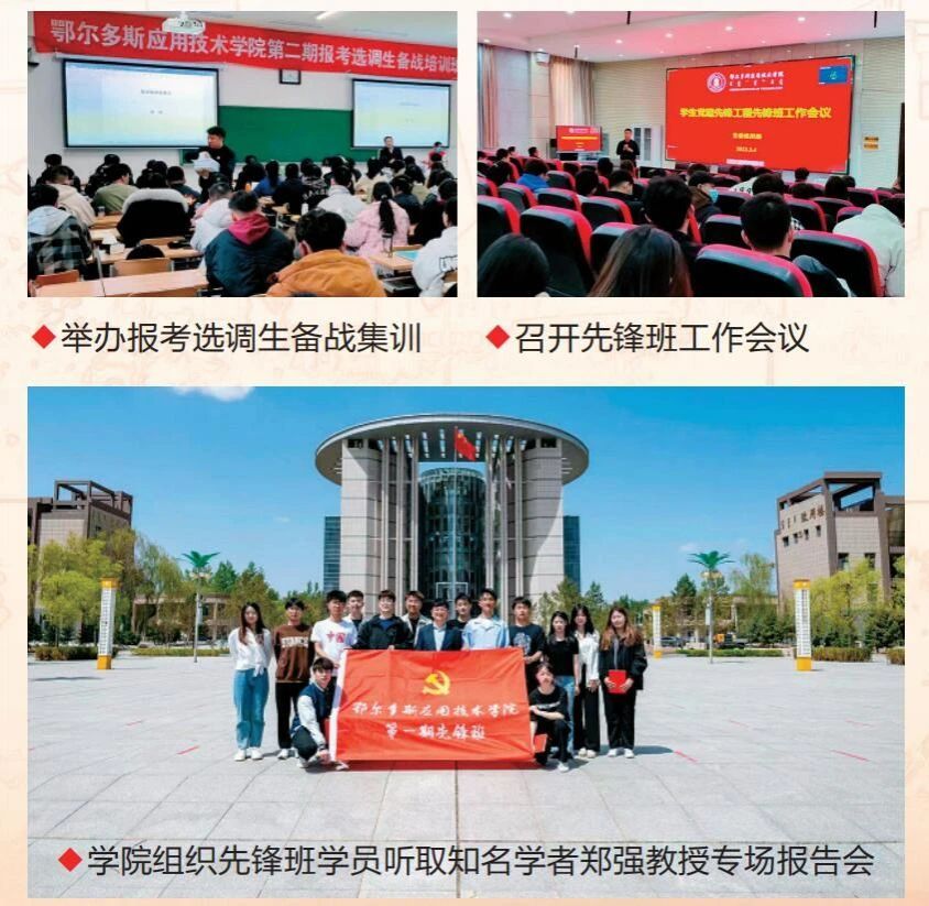 大學(xué)生先鋒班以“為黨育人、為國(guó)育才”為宗旨,以立德樹(shù)人為根本任務(wù)。從 2021 年起,學(xué)校黨委組織部、黨校每年從參加普通高考新入學(xué)大學(xué)本科一年級(jí)新生中擇優(yōu)選錄 100 名政治素質(zhì)好、思想覺(jué)悟高、綜合能力強(qiáng)、符合加入黨組織的基本要求、品學(xué)兼優(yōu)的大學(xué)生為先鋒班學(xué)員。