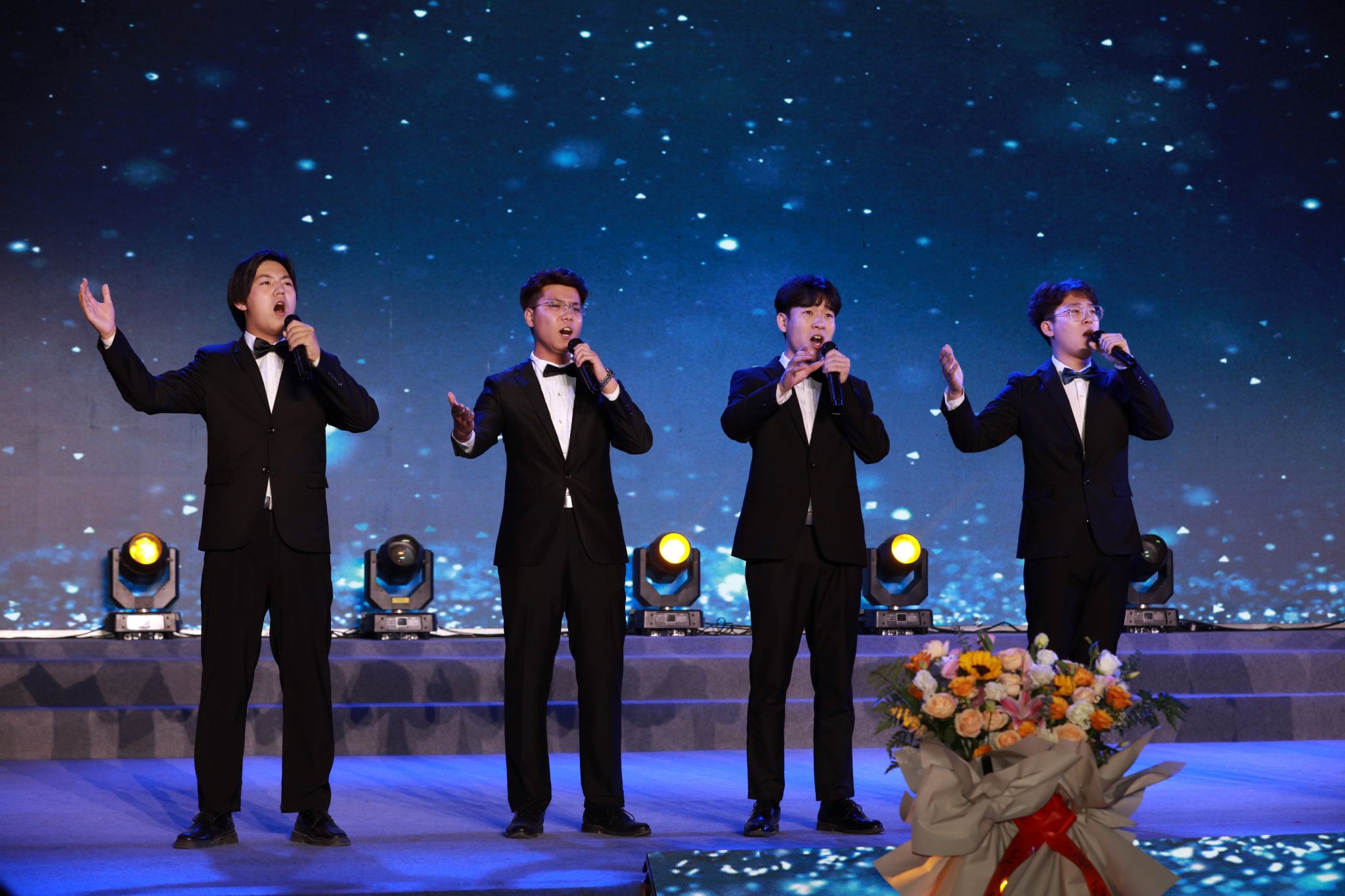 第三篇章“謳歌時代”在男聲三重唱《黃河從草原流過》拉開帷幕,配合默契、悠揚動人的歌聲展示出內(nèi)蒙古沿黃地區(qū)古代文明的流光溢彩,也詮釋著中華民族古老文明多元一體的歷史真諦。男聲獨唱《不再猶豫》、古箏合奏《春江花月夜》、大型歌舞《節(jié)日歡歌》將晚會推向高潮,觀演一體的現(xiàn)場氣氛,讓線上線下的觀眾在華美的燈光下、喜慶的氣氛中,觀看了一臺熱情奔放、催人奮進的精彩演出。晚會主題鮮明,節(jié)目內(nèi)容豐富多彩,充分展現(xiàn)了鄂應(yīng)院蓬勃發(fā)展、欣欣向榮的景象,進一步激發(fā)廣大師生在新時代、新征程上奮發(fā)有為、砥礪前行。