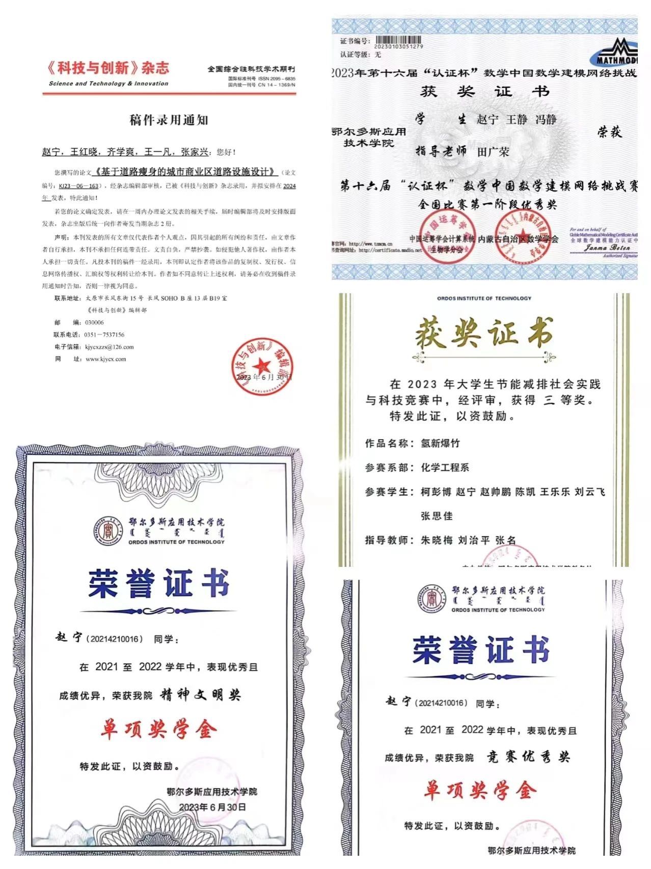 在科研領(lǐng)域,我積極投身于學(xué)校組織的各類科研實(shí)踐活動(dòng),從而積累了豐富的科研實(shí)踐經(jīng)驗(yàn)。近年來,我創(chuàng)立了我們專業(yè)首個(gè)科研工作室——智能交通科研工作室。在帶領(lǐng)工作室成員的過程中,我們結(jié)合專業(yè)所學(xué)和經(jīng)驗(yàn)積累,逐步探索交通行業(yè)的新發(fā)展趨勢(shì)。我們團(tuán)隊(duì)撰寫的綠色環(huán)保知識(shí)報(bào)告榮獲校級(jí)優(yōu)秀社會(huì)實(shí)踐調(diào)研報(bào)告,今年6月,我們所提交的期刊論文亦成功被采納。在研究同類項(xiàng)目的同時(shí),我們還延伸出實(shí)用新型專利2篇,并預(yù)計(jì)在25年與當(dāng)?shù)亟煌ü苤撇块T展開合作,實(shí)施落地項(xiàng)目。科研成果的取得讓我深感智能交通的魅力無窮,堅(jiān)定了我為智能交通發(fā)展貢獻(xiàn)力量的信念,以期為國家交通強(qiáng)國目標(biāo)盡一份綿薄之力。