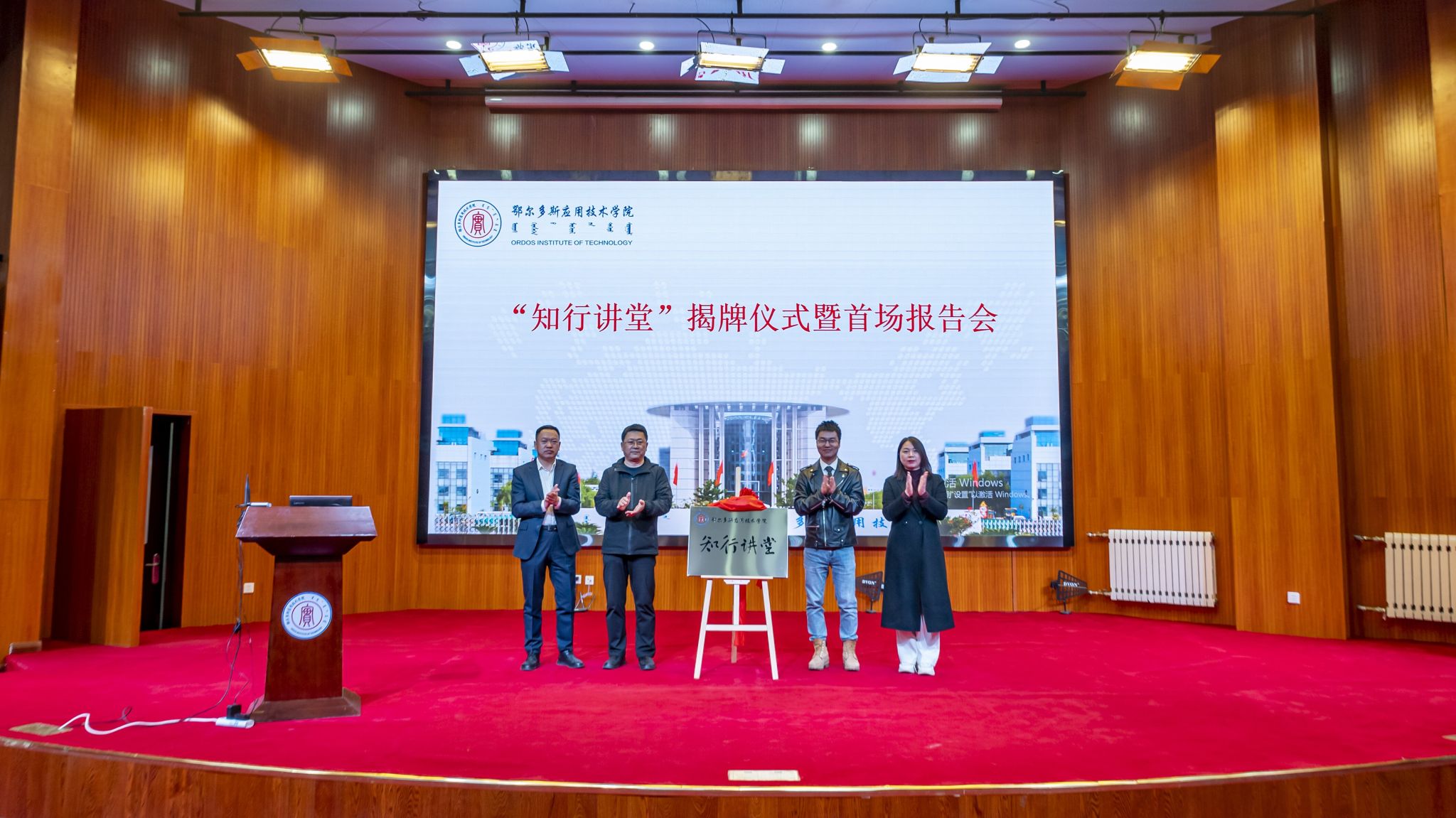 4月24日,學院“知行講堂”在二期報告廳揭牌,這是我院又一項黨建“新品牌”,也是思想交流的“大舞臺”。學院黨委副書記秦聞蘋及師生代表參加揭牌儀式。我校優秀校友劉長偉作為首場報告會的主講人,參加活動。