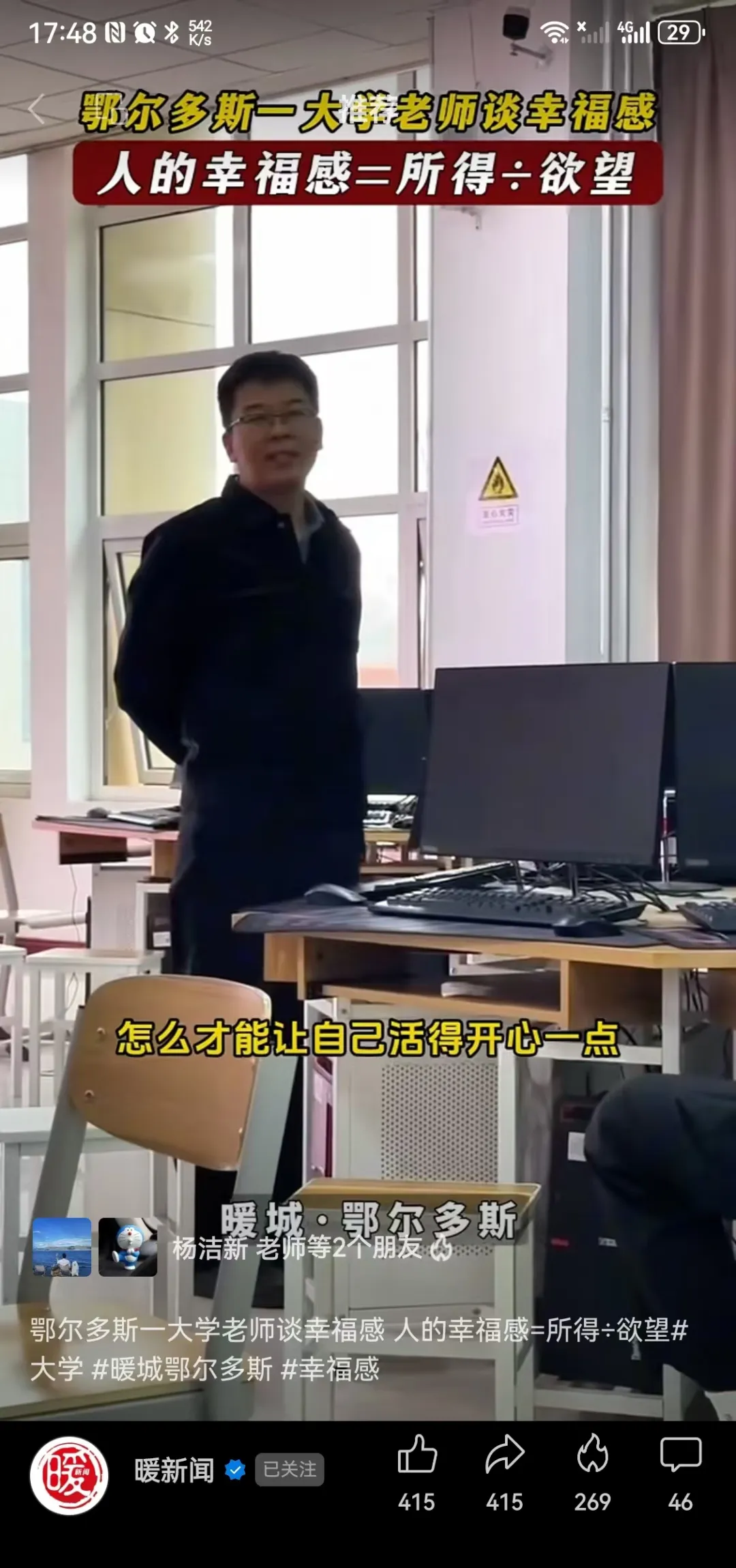 據了解,這段表述是賈老師在講安全系統工程課時,為了強調生命的重要意義,鼓勵大家學會保持樂觀積極的心態,享受美好的生活所說。因為與學生關系融洽,無意間被學生拍下來發布在了網絡,受到眾多網友的喜愛和贊同。