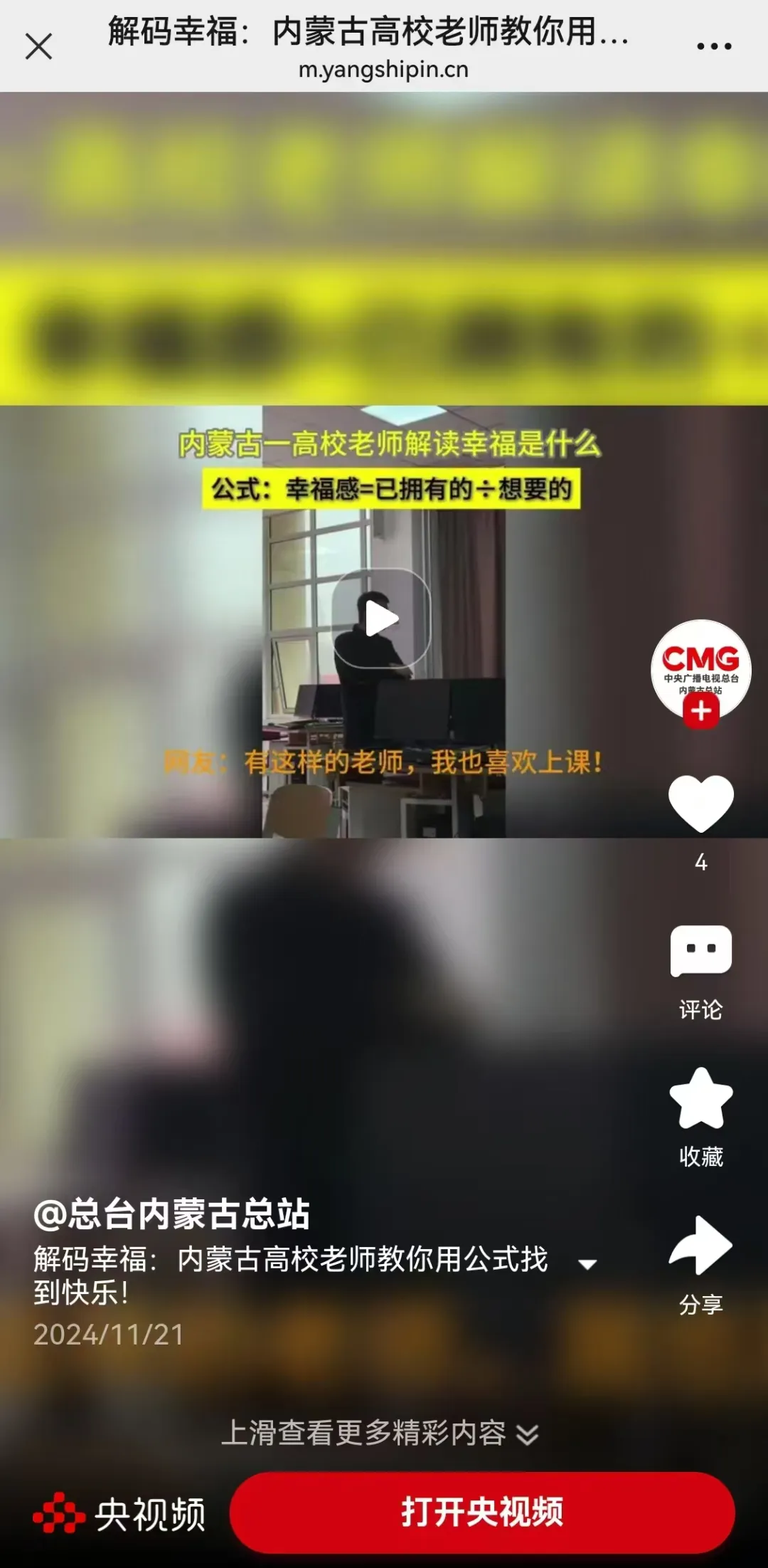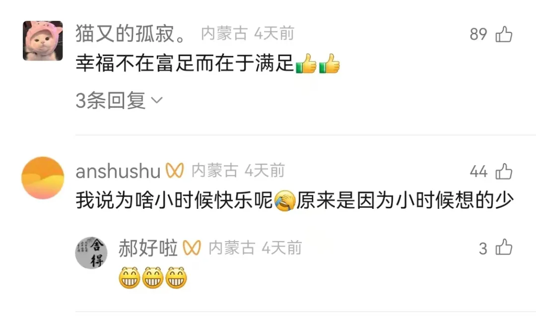 網友們紛紛點贊評論:“幸福不在富足而在滿足。”“認同。”······