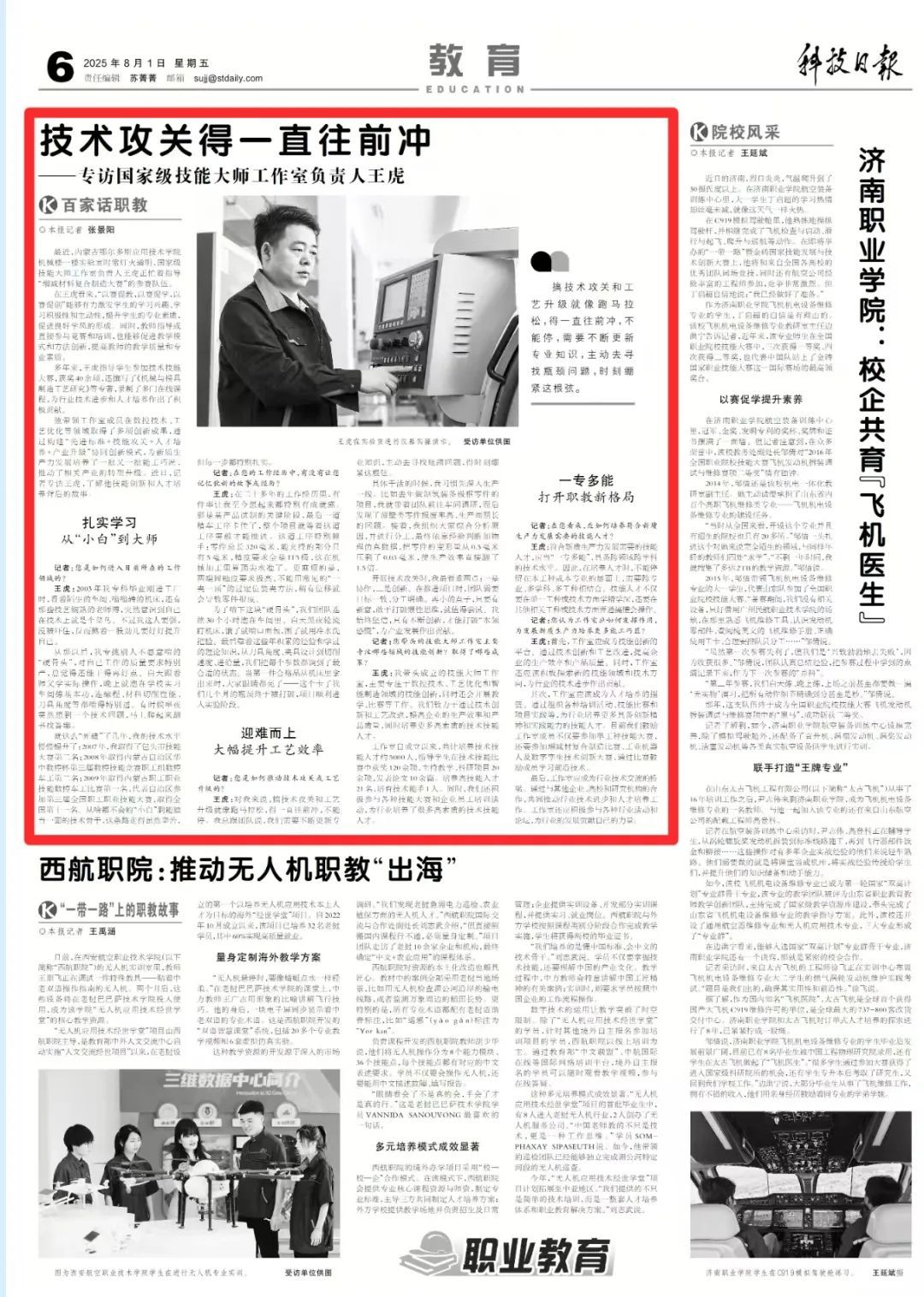日前,《科技日報(bào)》“百家話職教”專欄以《技術(shù)攻關(guān)得一直往前沖——專訪國家級技能大師工作室負(fù)責(zé)人王虎》為題,采訪我校教師王虎在技能創(chuàng)新和人才培養(yǎng)背后的故事。