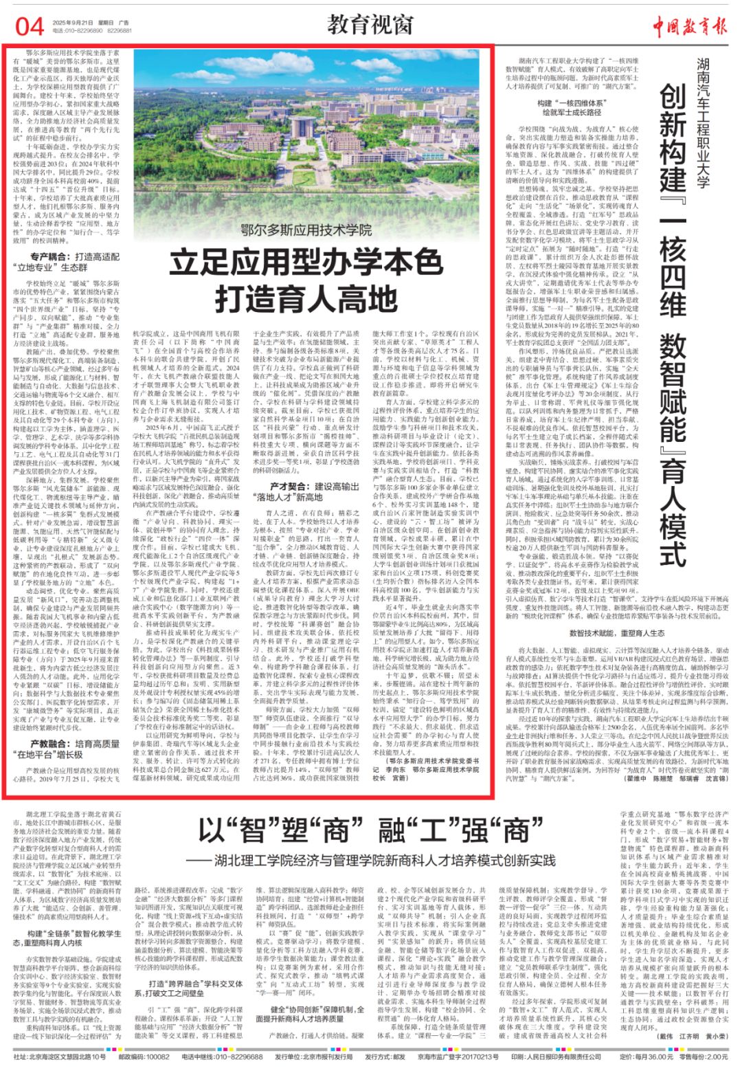 9月21日,學校黨委書記李向東,黨委副書記、校長宮箭在《中國教育報》發(fā)表署名文章《鄂爾多斯應用技術學院 立足應用型辦學本色 打造育人高地》。全文如下: