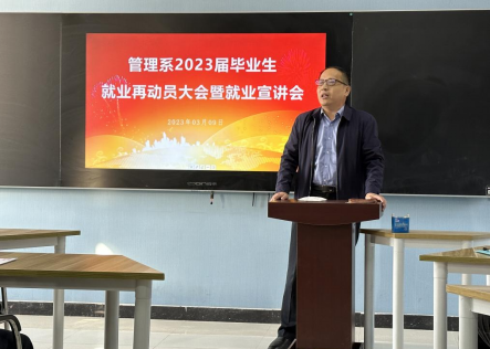 為認真做好管理系2023屆畢業生就業工作,幫助畢業生更好地了解當前的就業形勢、把握就業機會,管理系于3月9日上午召開2023屆畢業生就業再動員大會暨就業宣講會。管理系黨總支書記徐恒泰、系副主任劉海英、就業指導老師井南及管理系2023屆畢業生參加本次會議。