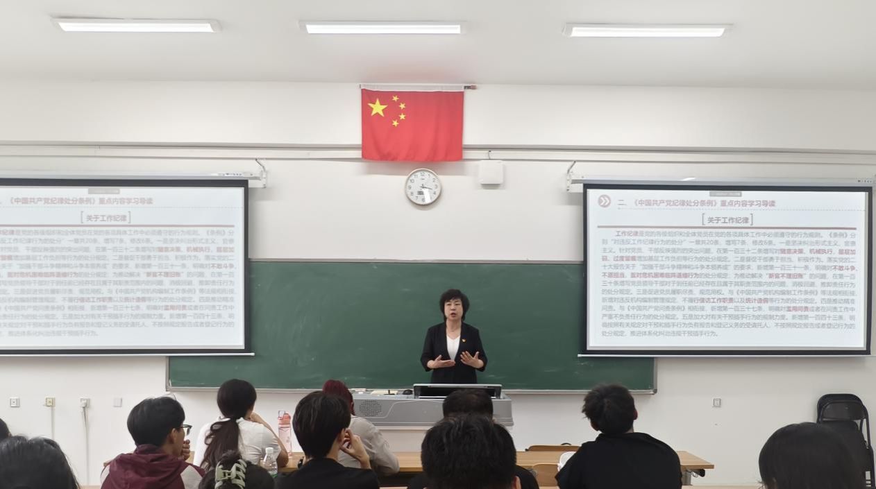 為推進黨紀學習教育走深走實,切實增強紀律意識和規矩意識,進一步筑牢拒腐防變的思想防線,6月20日,校黨委委員、副校長金良主為數學與計算機工程系黨支部全體師生黨員、預備黨員、發展對象、積極分子和青馬班學生講授黨紀學習教育專題黨課。