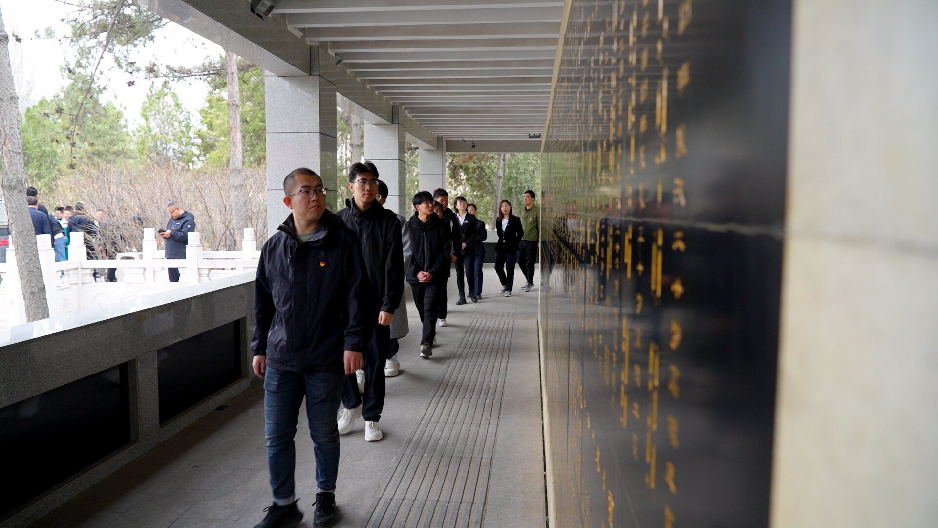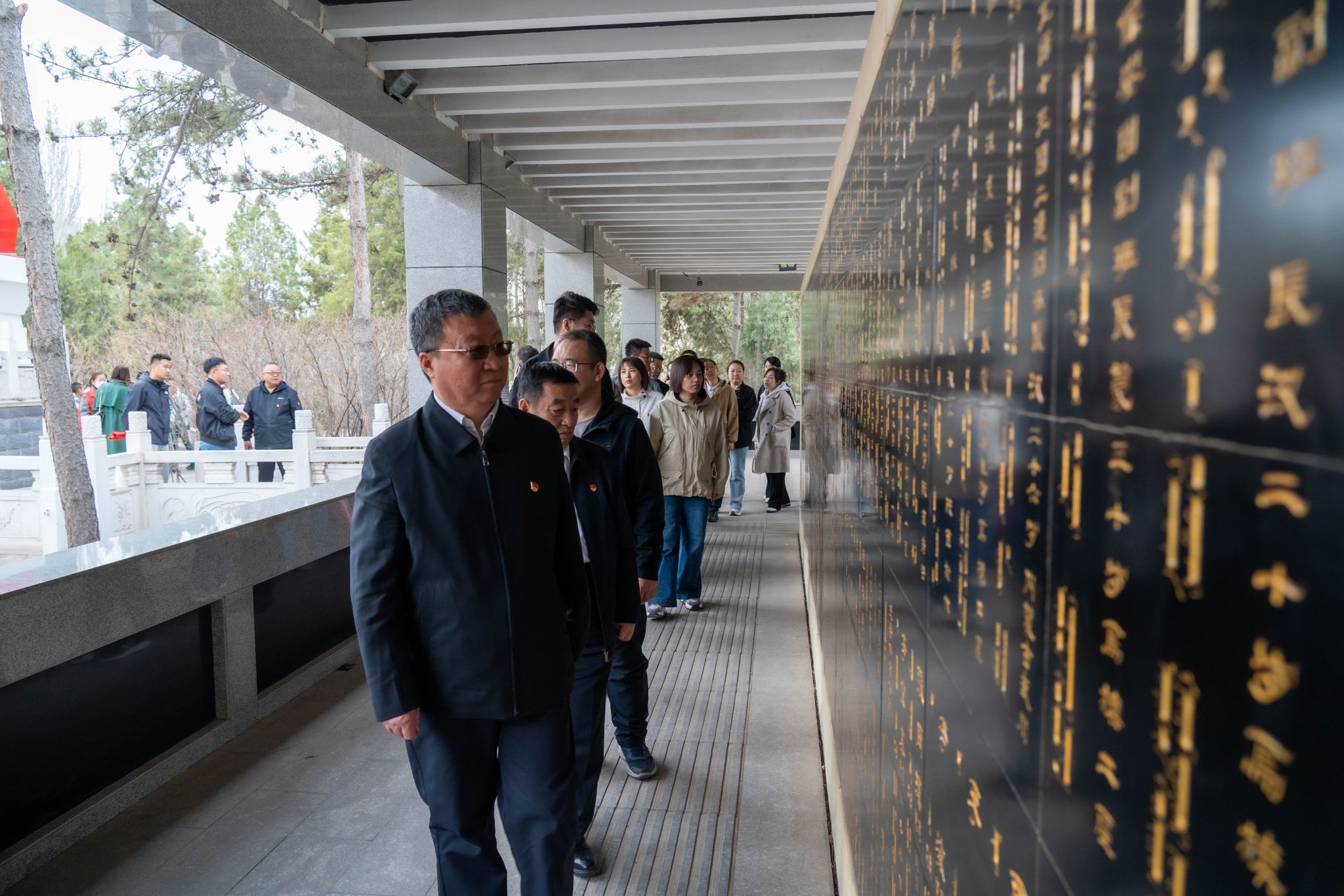 山河披錦繡,吾輩齊奮進。師生們依次向革命先烈行鞠躬禮并瞻仰革命烈士紀念塔、革命烈士譜碑亭?!案锩沂坑来共恍唷?個金光閃閃的大字和塔座四周8個鮮紅的火炬相互輝映。碑亭上席尼喇嘛、馬良誠、奇金山等166位烈士的英名和光輝業(yè)績讓師生仿佛回到風雨如晦的革命歲月,并被英烈們?yōu)檎胬砩舷虑笏鳎瑸樾叛鰥^斗犧牲的精神感召。