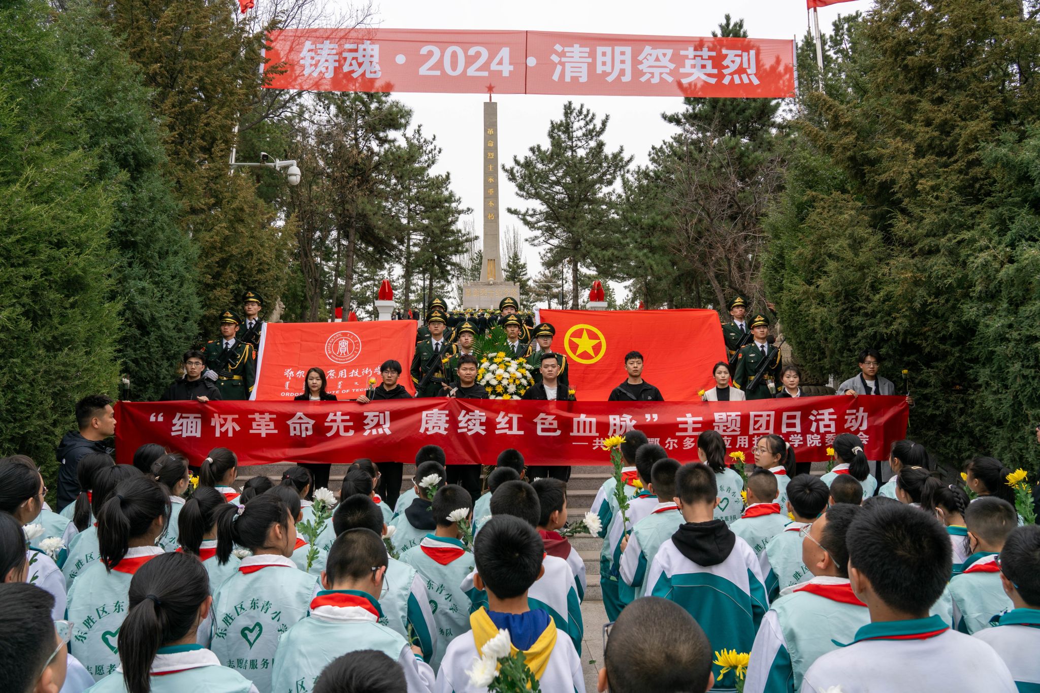 松柏吐新翠,春風寄哀思。清明時節(jié),學校在莊嚴肅穆的東勝區(qū)烈士陵園開展“緬懷革命英烈、賡續(xù)紅色血脈”清明節(jié)主題祭掃活動。學校黨委委員、紀委書記、監(jiān)察專員李少東以及機關(guān)黨總支黨員代表、學生會、青馬班、國旗班部分學生共50多名師生滿懷崇敬之情參加祭掃,共同致敬英烈、緬懷追思、砥礪奮進。