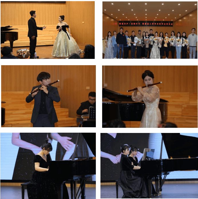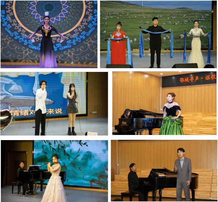 日前,藝術系隆重舉行“鄂域尋聲,謳歌時代”2024屆音樂表演畢業音樂會、舞蹈表演畢業匯報演出系列活動。畢業生以其四年的專業學習和多樣化舞臺呈現,讓師生更多地去感受藝術之美,讓美育浸潤校園,充分展現出他們精湛的技藝和飽滿的熱情,從剛入學時舞臺上稚嫩的模樣,到音樂會的完美呈現已經有了質的飛躍,富有感染力的歌聲、嫻熟的技法彈奏和曼妙的舞姿為觀眾呈現了一場場視聽盛宴。