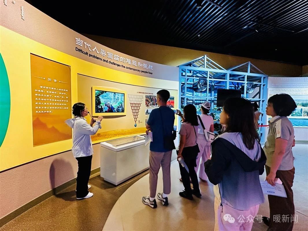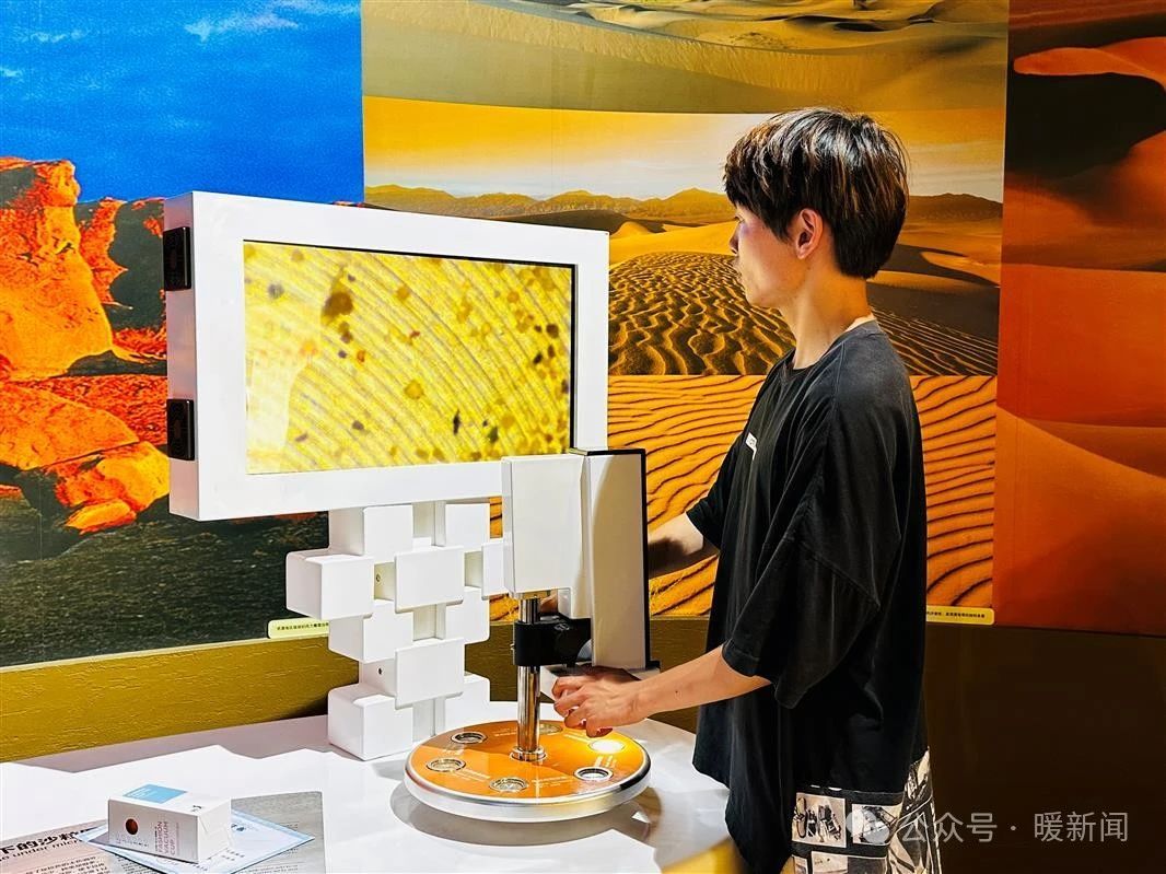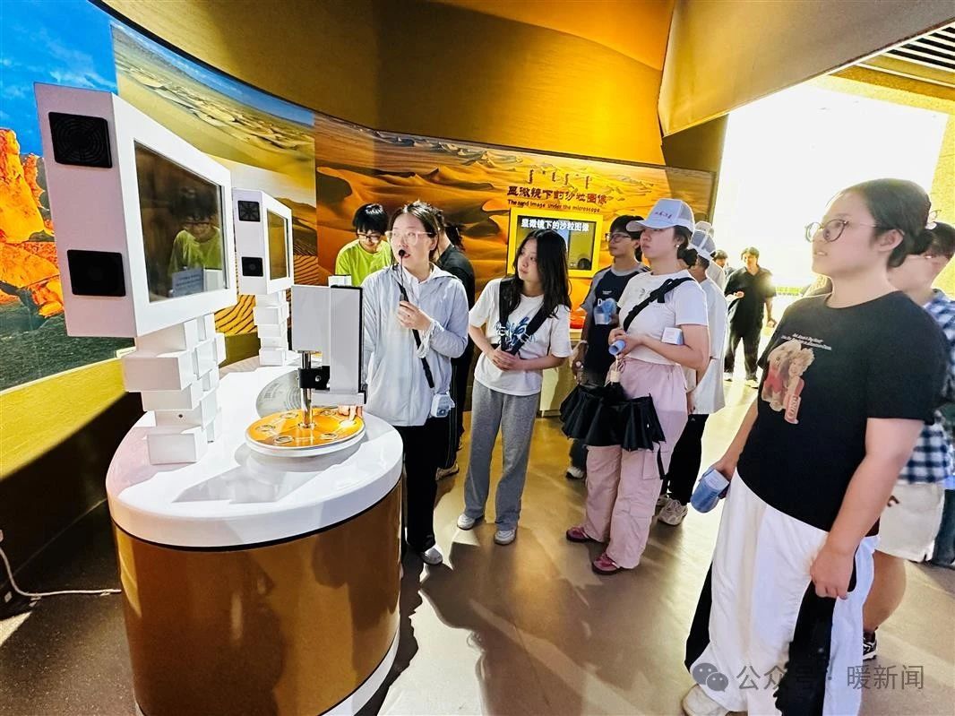 在恩格貝沙漠科學(xué)館,大家在講解員的帶領(lǐng)下,了解世界各地的干旱荒漠類型、觀看顯微鏡下的沙粒圖像、認(rèn)識(shí)貓鼬和沙狐等沙漠動(dòng)物。在一塊塊人類面臨的各種嚴(yán)重的環(huán)境問(wèn)題和挑戰(zhàn)展板前,大家駐足思考。