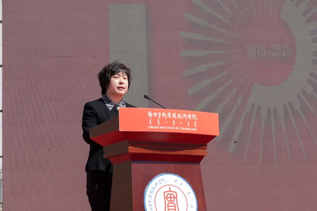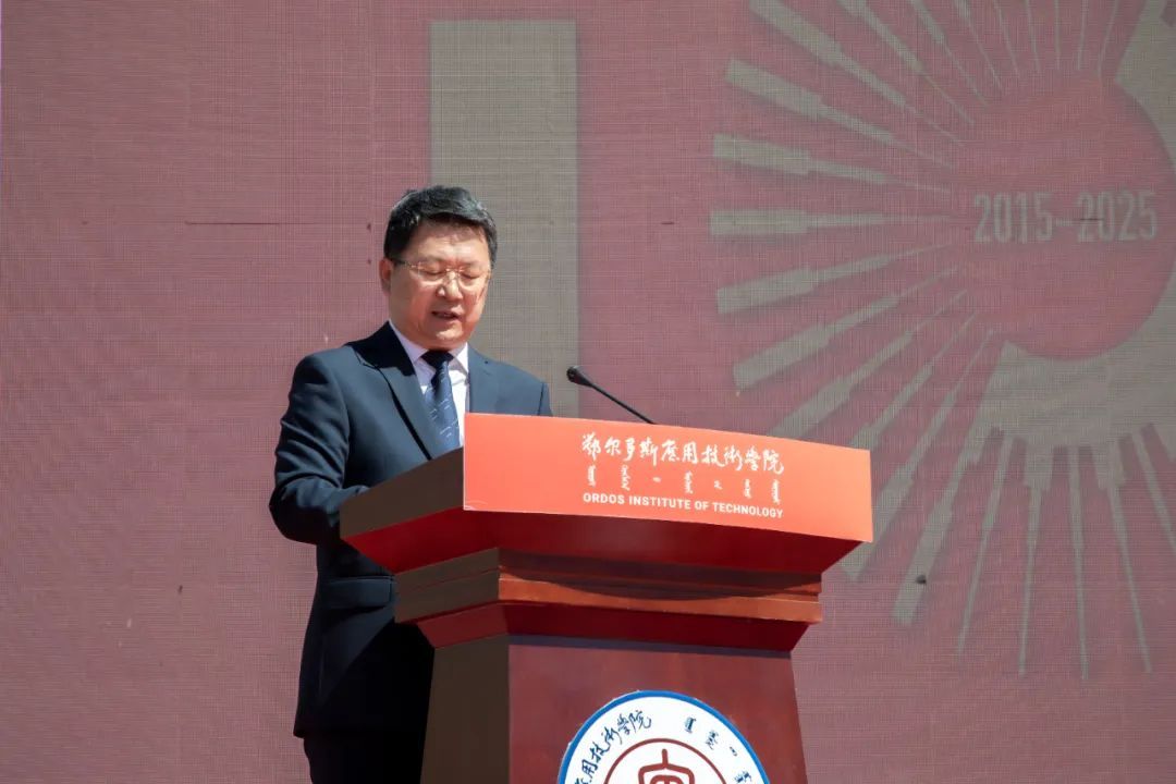 學校黨委委員、紀委書記、監察專員李少東宣布鄂爾多斯應用技術學院10周年校慶標識隆重發布。這一凝聚著學校精神與文化底蘊的視覺符號,不僅是對學校10年發展歷程的總結,也是對未來美好的展望和規劃。