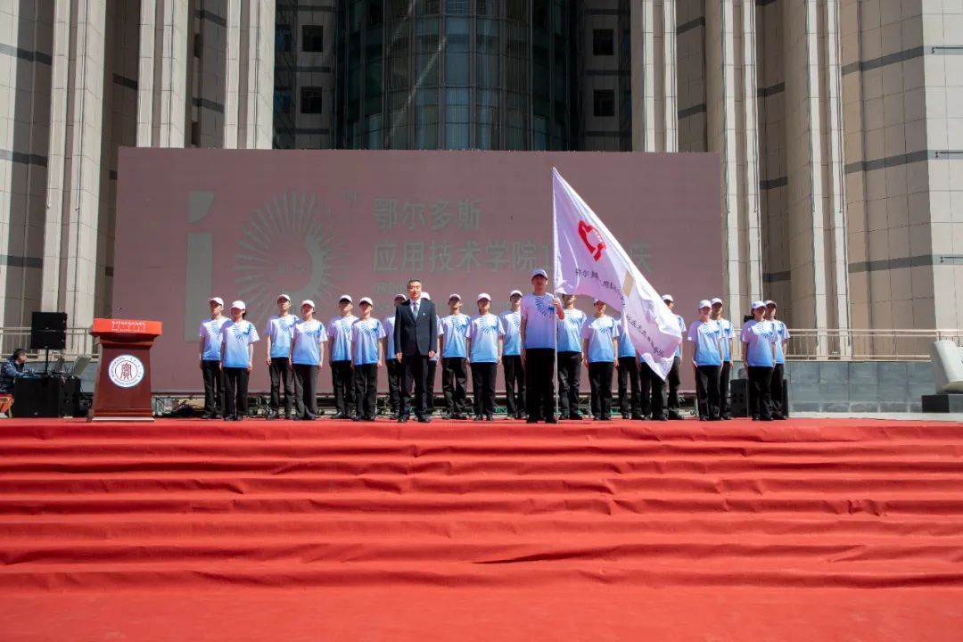 在嘹亮的國歌聲中,青春臉龐映著朝陽,鄂爾多斯應用技術學院10周年校慶啟動儀式拉開序幕。學校黨委副書記秦聞蘋主持儀式,學校領導、干部職工、學生代表共500多人歡聚一堂,共同祝愿學校生日快樂。