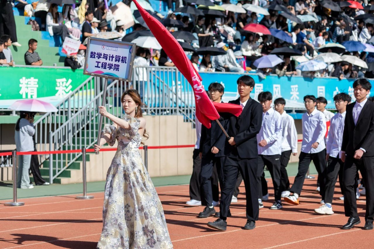 “代碼攻堅、方程破界、數計健兒、逐夢奪魁”,數學與計算機工程學院方陣步伐堅定,展現出追求卓越的精神風貌。