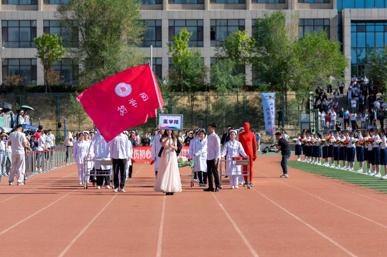“救死扶傷初心不忘、賽場拼搏勇創輝煌”,醫學院方陣將“健康所系,性命相托”的醫者誓言融入表演,白大褂與運動服的交織成為獨特的風景。