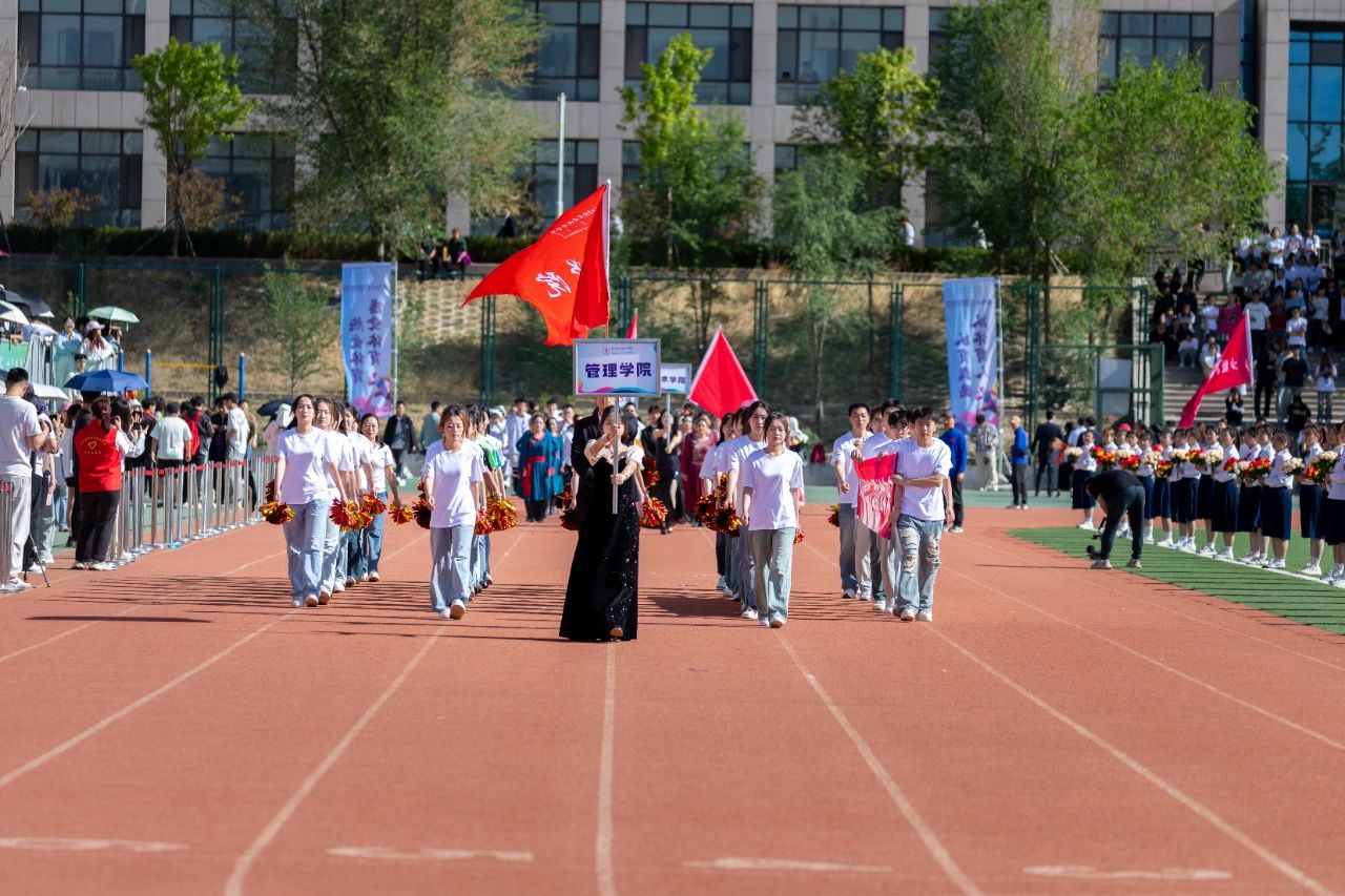 “勵志十年、筑夢遠航、賽場馳風、青春飛揚”,管理學院方陣身著統一服裝、步伐鏗鏘,展現出管理學院學子銳意進取、勇攀高峰的精神風貌。