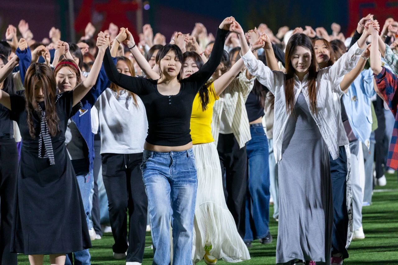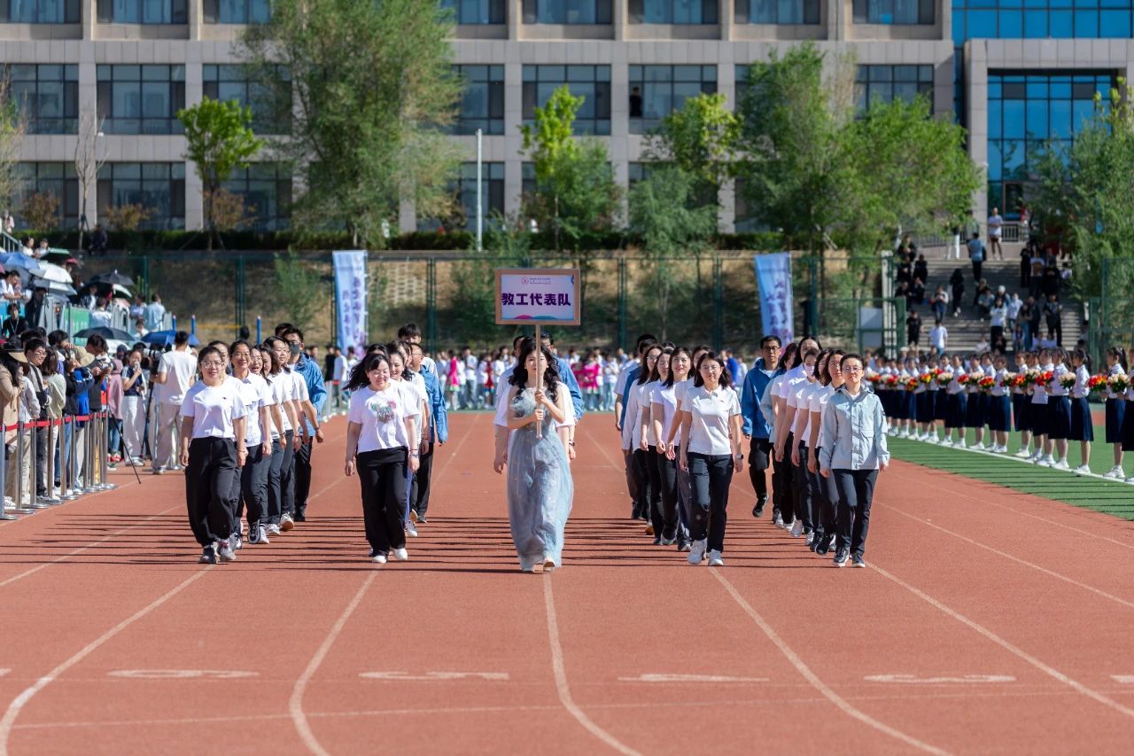 教職工代表隊壓軸出場,平日里嚴謹治學的教師們展現出昂揚向上的精神風貌,贏得全場熱烈掌聲。