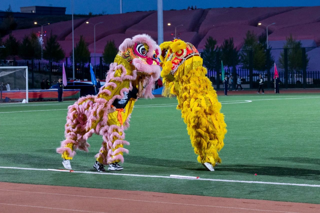 瑞獅獻吉,鼓韻傳神!在激昂的鼓點聲中,8只祥獅騰躍入場。表演者以靈動步法,默契配合,展現獅魂的威儀與靈動。騰躍的雄獅,舞動的是千年非遺的魂,更是青春熱血的燃。