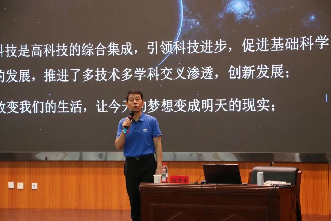 本次活動由鄂爾多斯市科學技術局、鄂爾多斯市可持續發展促進中心主辦,學校大飛機學院協辦。特邀中國首批航天員、原空軍一級飛行員趙傳東授課。