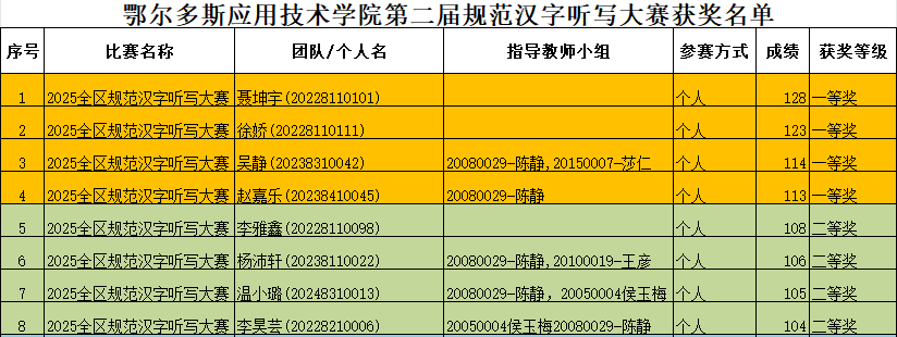 經過激烈角逐,最終評選出一等獎 4 名、二等獎 4 名、三等獎 11 名以及優秀獎若干名。獲獎名單如下: