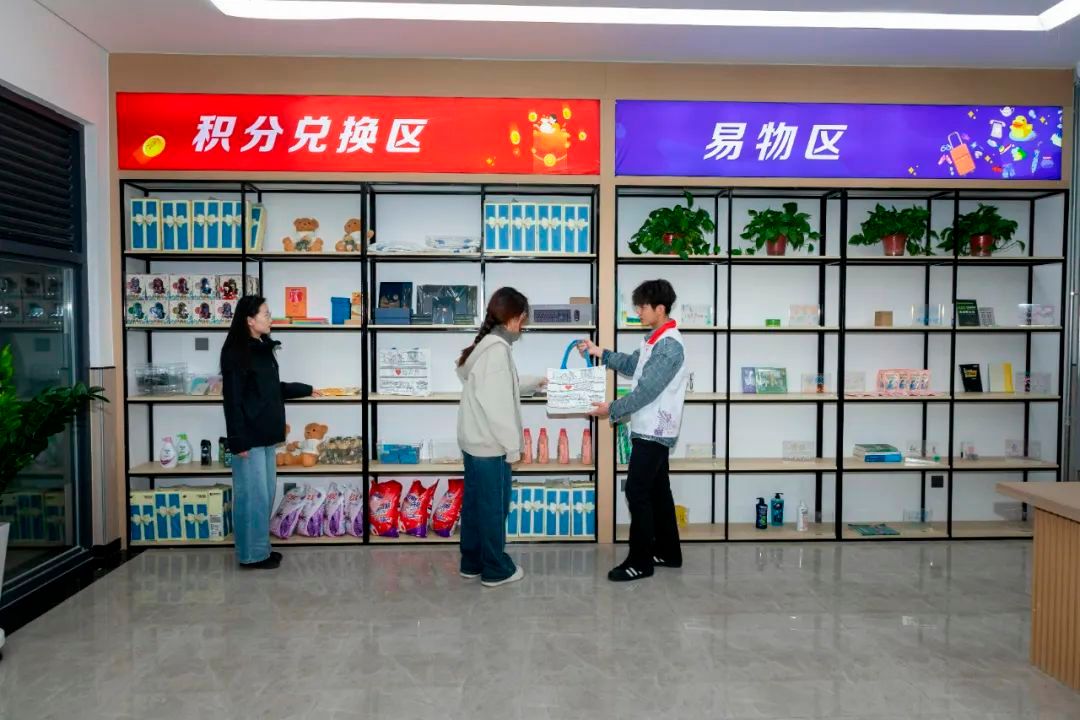 在宿舍區還有一間“不用花錢的超市”,學生可以用平時所得的積分,兌換自己所需要的禮物,還可以免費租借禮服和西裝。