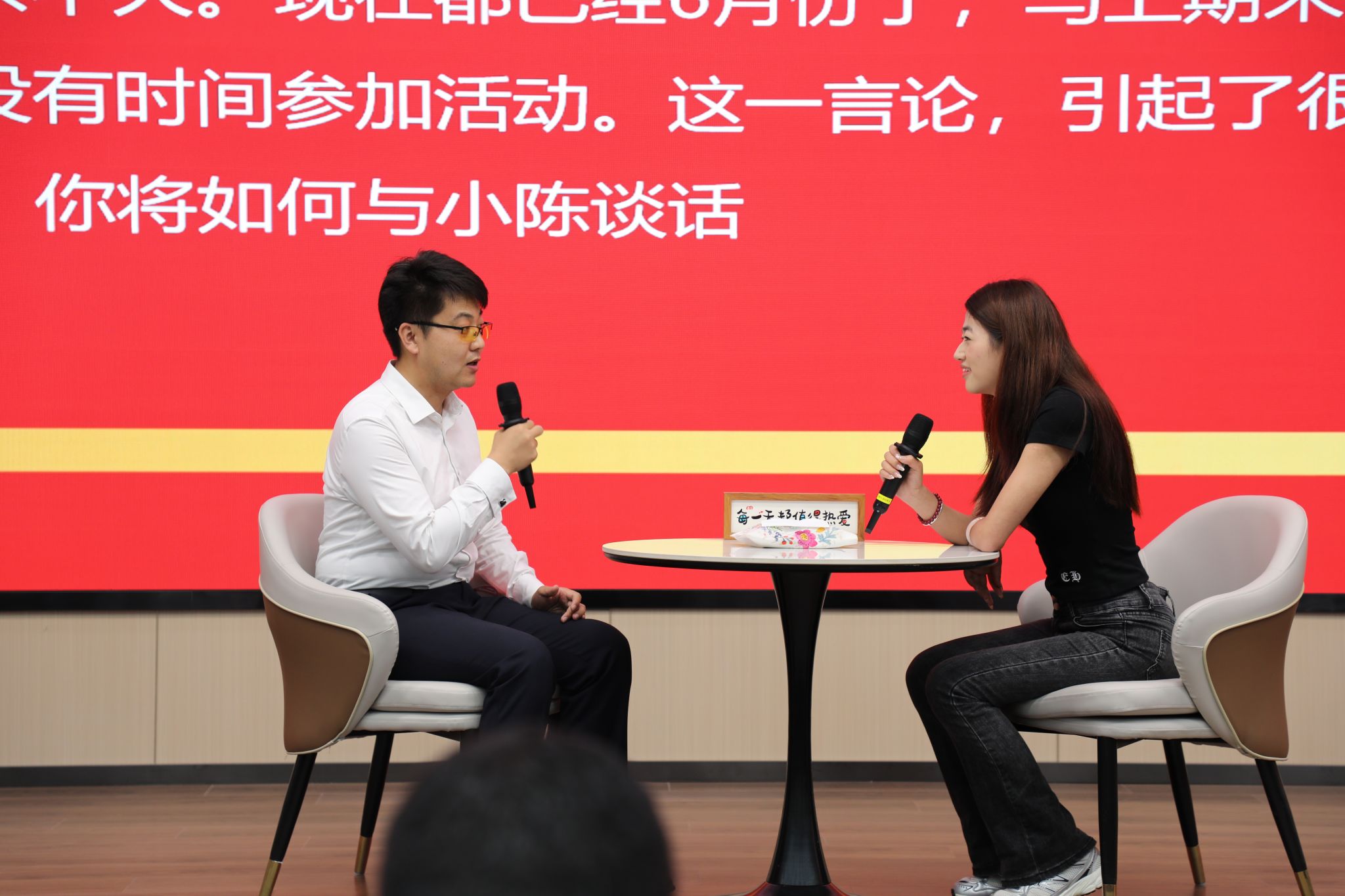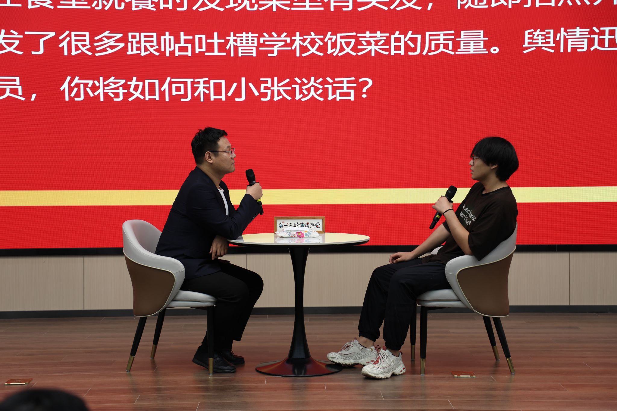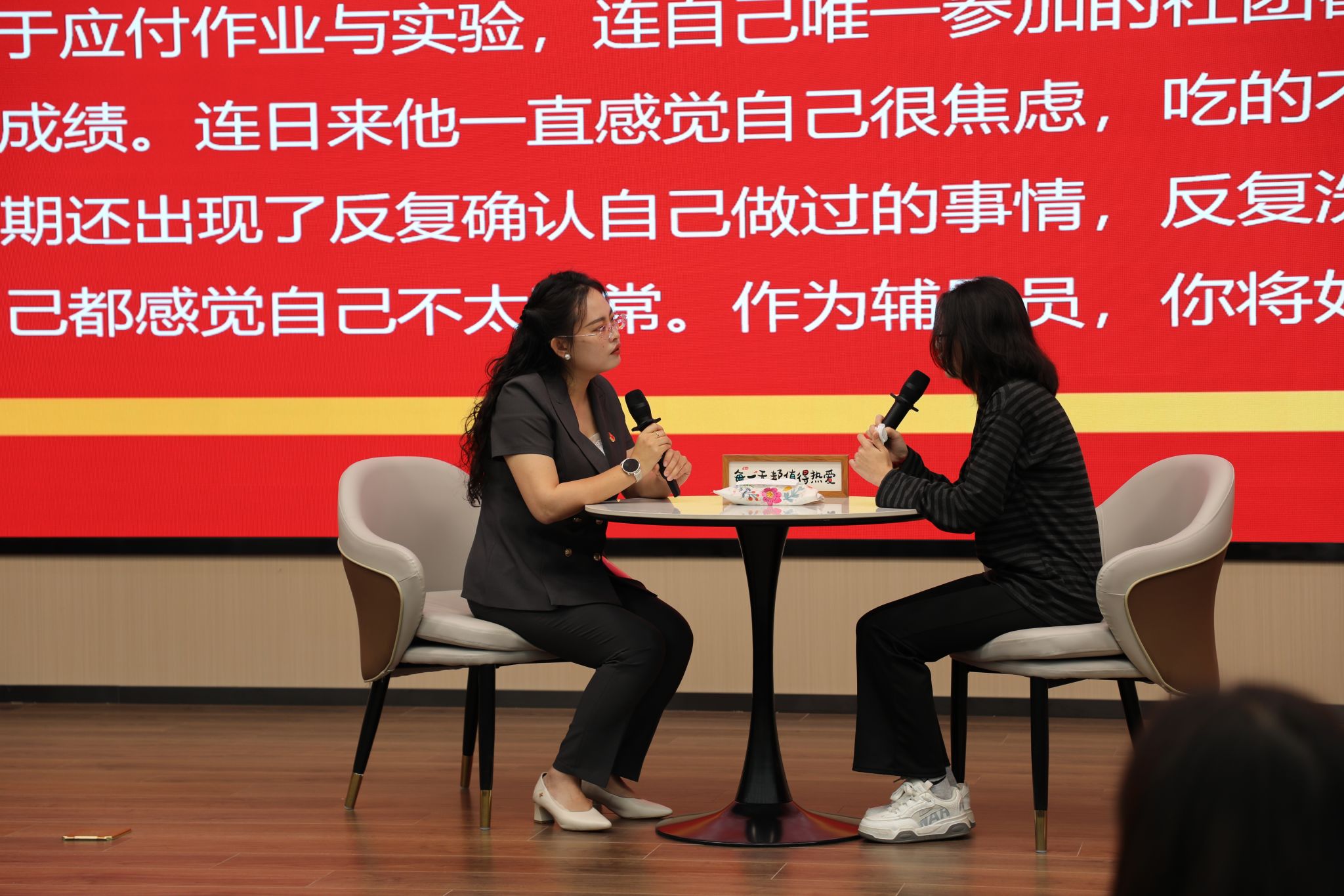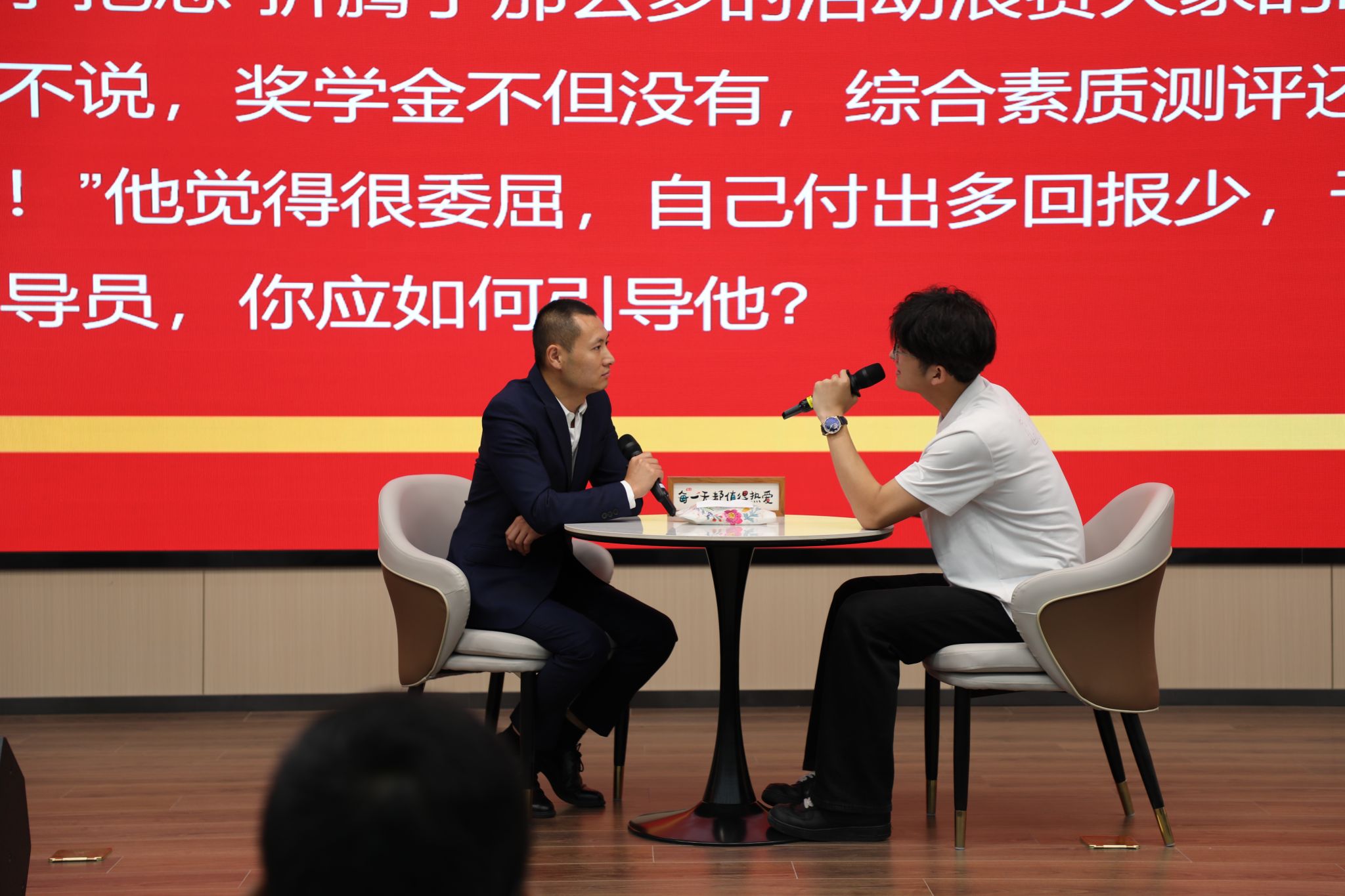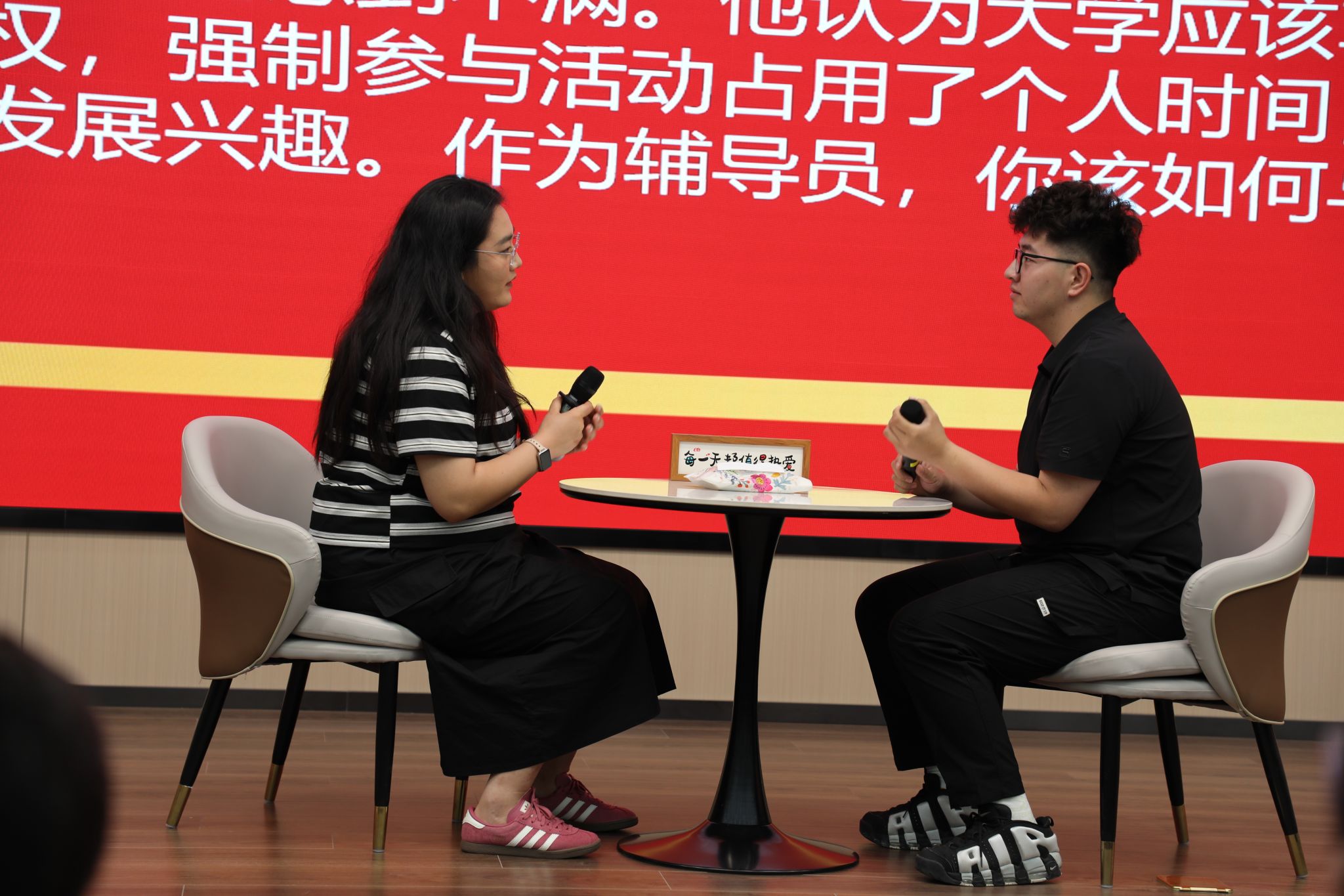 談心談話環節則模擬了學業預警、宿舍矛盾、網絡沉迷等常見場景,輔導員們通過情景再現,以共情傾聽和智慧引導化解學生困惑,生動詮釋了“以生為本”的教育理念。