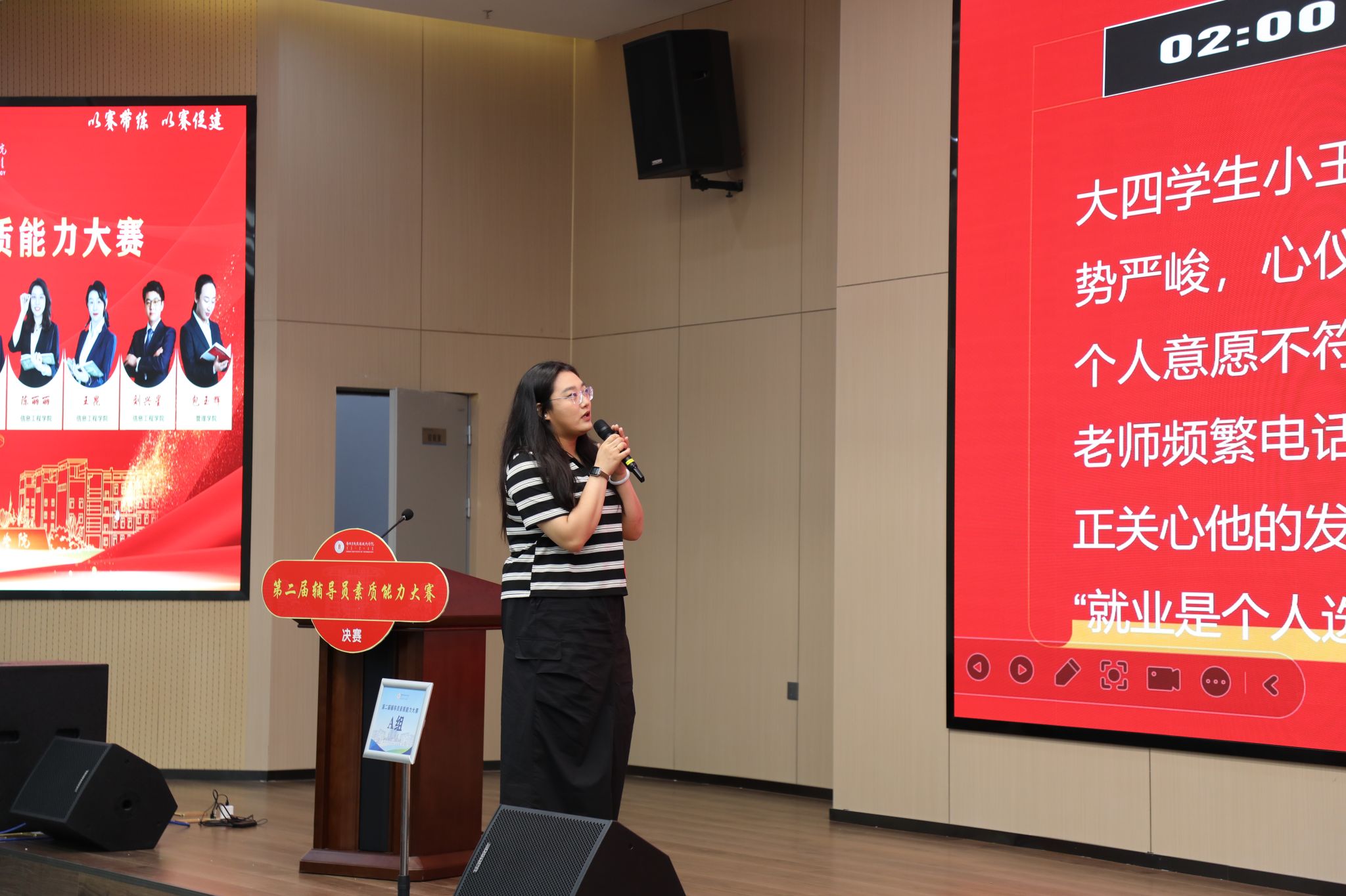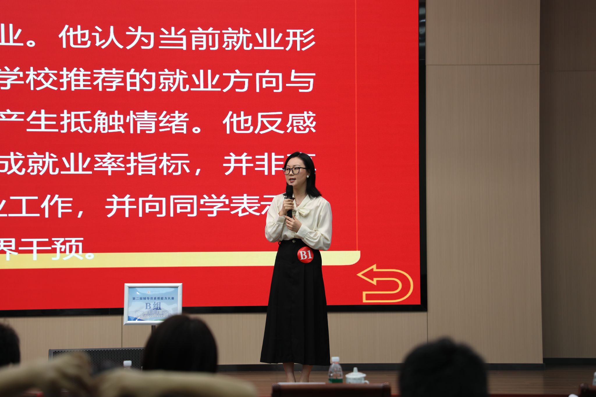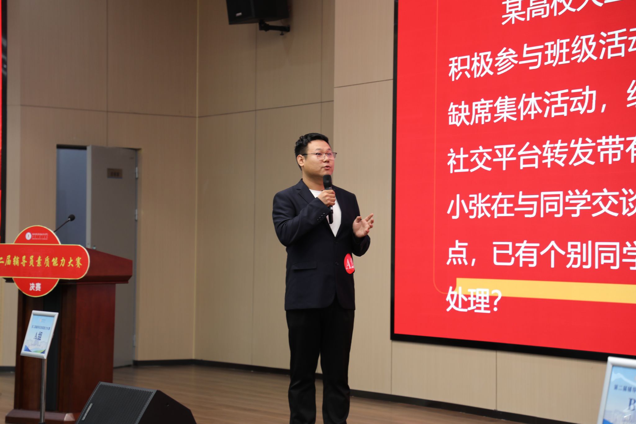 10名從初賽脫穎而出的優秀輔導員同臺競技,通過案例研討和談心談話兩大環節,展示學校輔導員隊伍的專業素養與育人風采。在案例研討環節,選手們圍繞“AI沖擊下的專業選擇引導”“新生心理調適”“貧困生認定爭議處理”“校園輿情應對”等現實問題展開深度剖析,以扎實的理論功底和豐富的實踐經驗提出解決方案,展現了輔導員在思想引領與危機處置中的關鍵作用。